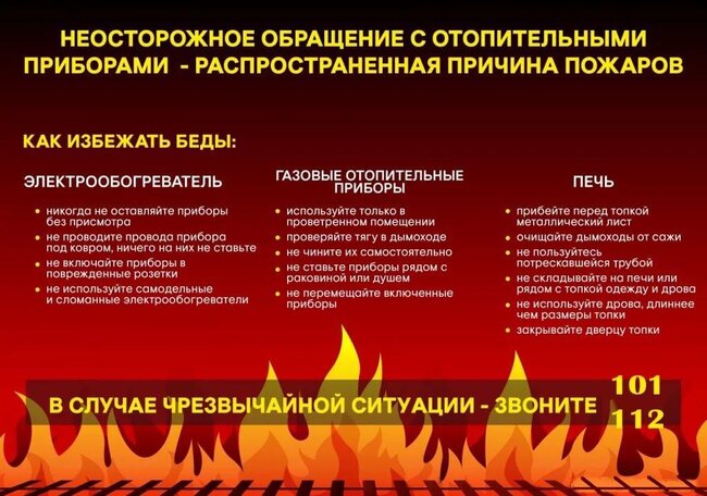 О правилах эксплуатации отопительных приборов, печей, мерах пожарной безопасности, опасности оставления детей одних без присмотра