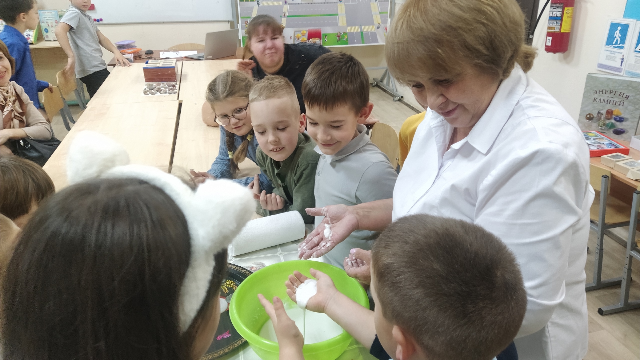 Затем Ольга Юрьевна рассказала о деятельности в кружках. Совместно с воспитанниками кружка «Занимательная лаборатория» продемонстрировали для родителей опыт, затронула вопрос о правилах безопасности детей на проезжей части в разное время суток.